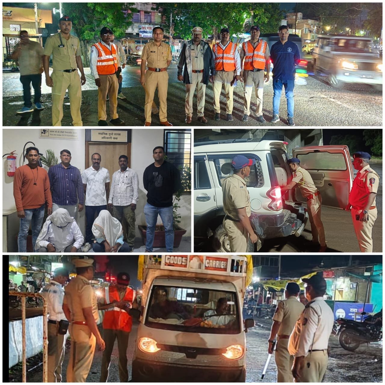 या कारवाईत 4 आरोपींना अटक करून त्यांच्याकडून 89,236/- किमतीचा माल जप्त करण्यात आला.यावरून पोलीस अवैध धंद्यावर किती कडक कारवाई करत आहेत, हे दिसून येते. केवळ जुगारच नाही तर सार्वजनिक ठिकाणी दारू पिऊन गोंधळ घालणाऱ्यांवरही पोलिसांनी अंकुश ठेवला आहे. सायंकाळी 7 ते 11 वाजेपर्यंत संपूर्ण जिल्ह्यात आकस्मिक नाकाबंदी करण्यात आली. पोलीस ठाण्यांनी विशेष पथके तयार करून निश्चित नाकाबंदीच्या ठिकाणी वाहनांची तपासणी केली. यादरम्यान शांतता भंग करणाऱ्या आणि कायद्याचे उल्लंघन करणाऱ्या ७९ जणांना मुंबई पोलिस कायद्यांतर्गत अटक करण्यात आली. नाकाबंदी दरम्यान जिल्ह्यातील एकूण २४ नाकाबंदीच्या ठिकाणी ९३७ वाहनांची तपासणी करण्यात आली.