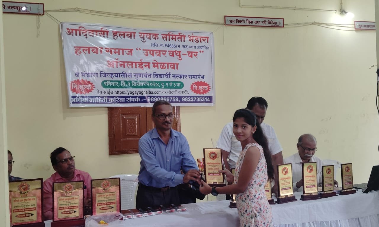 आदिवासी हलबा युवक समिती भंडारा तर्फे भंडारा जिल्ह्यातील गुणवंत विद्यार्थी सत्कार समारंभ कार्यक्रम आयोजित करण्यात आले होते त्याप्रसंगी अध्यक्ष स्थानी लाभलेले प्रा.अनिल नवलाखे, प्रमुख पाहूणे आनंदराव बावणे बँक प्रबंधक ,बँक ऑफ इंडिया लाखांदूर इतर पाहुणे भास्कर नंदनवार अनिल पराते संस्था अध्यक्ष, मनोहर हेडाऊ संयोजक, विजय पेठकर, प्रितम कुंभारे संचालक पी. एस. कॉम्पुटर , चेतन सोनकुसरे यांच्या प्रमुख उपस्थितीत श्री .माँ दंतेश्वरी माता यांच्या प्रतिमेला पुष्पहार अर्पण करून दीप प्रज्वलन करण्यात आले .मार्च 2024 दहावी -बारावी बोर्डाच्या परीक्षेत चिन्मय उमाकांत धकाते भंडारा 97 % , सोनाक्षी अरुण धका ते भंडारा 96.80%, कुमुद प्रदीप बोकडे 92 %, दृष्टी ऋषी खोत भंडारा 92 %, वेदिका राधेश्याम सोणकुसारे अंधाळगाव 89.20%, कृपाली नरेंद्र बावणे मोहाडी 92 % , यामिनी राजेश डेकाते मोहाडी 92.80%, आयुषी घनश्याम श्रीपाद मोहाडी 88.40 %, वांशिक विश्वनाथ डेकाटे मोहाडी 85.40% सुरेश पीतांबर बारापात्रे भंडारा 76%, तनुक्षा रमेश कोहाड भंडारा 76 %उत्कृष्ट गुण घेऊन उत्तीर्ण विद्यार्थ्यांनाच गुणगौरव करून सत्कार करण्यात आले.