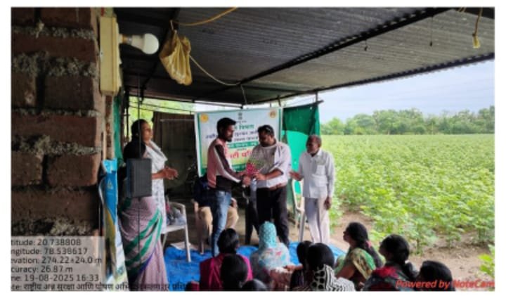 आज दिनांक 19/08/2025 मौजा रोठा येथे राष्ट्रीय अन्नसुरक्षा अभियान कडधान्य अंतर्गत सलग तुर पिकाचे शेतकरी प्रशिक्षण घेण्यात आले असून सदर प्रशिक्षणास बजाज कृषी महाविद्यालय वर्धा येथील वैभव गिरी सर उपस्थित होते व त्यांनी शेतकऱ्यांना तुरीवरील खत व्यवस्थापन, शेंडेखुड,मर रोग व्यवस्थापन व हुमणी अळी इत्यादी विषयावर मार्गदर्शन केले तसेच सदर प्रशिक्षणास कु.रीना भगत उप कृषि अधिकारी यांनी कृषि विभागातील विविध योजनाची माहिती दिली
