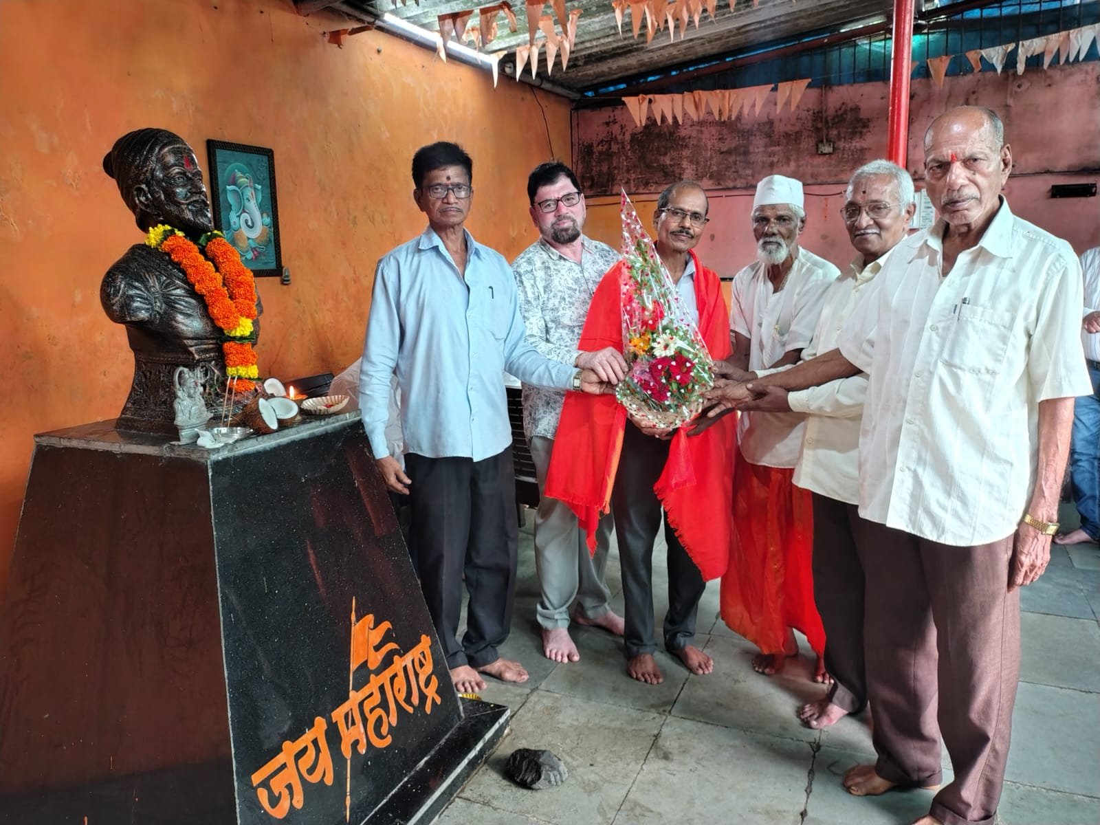 शेतकरी संघटनेचे सक्रिय खजिनदार सामाजिक कार्यकर्ते श्री रत्नाकर काशीराम घरत यांच्या हस्ते शिवपुतळ्यास विजय पुष्पमाला अर्पण करण्यात आली.ह.भ.प केशव महाराज घरत