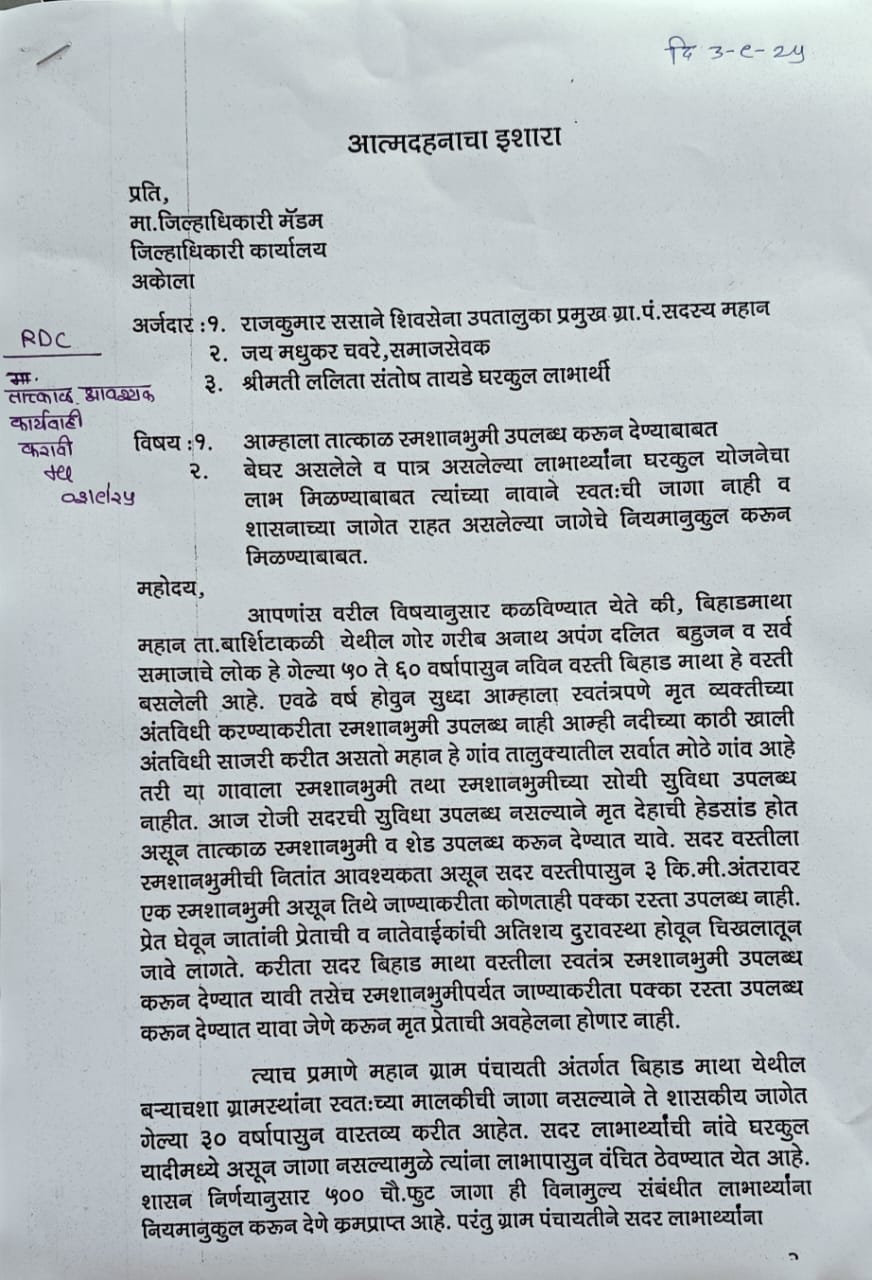 बार्शिटाकळी: आम्हाला तालुक्यात स्मशानभूमी उपलब्ध करून देण्याबाबत