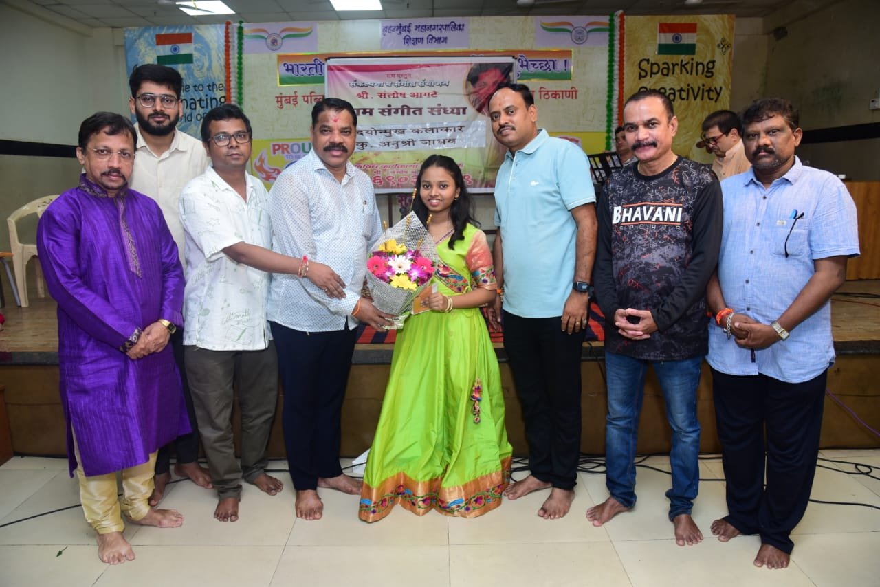 त्यांनी बालकलाकार अनुश्री चे भरभरून कौतुक करून बक्षिसेही दिली. कीबोर्ड वर श्री. पाटील व श्री. शिधये तबला – श्री संतोष आगटे व ढोलक ढोलकी श्री. विनय चौगुले यांची समर्पक अशी संगीत साथ लाभली. कार्यक्रमाची संकल्पना व संयोजक श्री संतोष आगटे (निदेशक मुंबई महापालिका शिक्षण विभाग) व सहसंयोजक श्री विनय चौगुले (निदेशक संगीत विभाग मुंबई महानगरपालिका) यांचे होते. या कार्यक्रमाचे सुंदर सूत्रसंचालन श्रीम. गौरी आठल्ये यांचे होते.