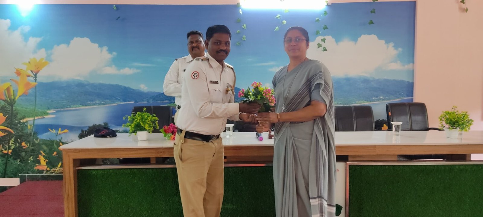 प्राचार्य जसी मैडम की अध्यक्षता में ली गई उप प्रादेशिक कार्यालय के अधिकारी श्री डोंबले वाहतूक नियंत्रण शाखा के सहायक फौजदार चंदू खोंडे पोलीस अमलदार रियाज खान स्कूल बस ऑटो रिक्षा व व्हेन बस चालक मालक 40/45 कार्यशाळा मे हजर थे इस कार्यशाळा मे वाहतूक शाखा वर्धा के पोलीस अमलदार रियाज खान ने वाहतूक नियम का पालन करे व मानव गलतिया से होने वाले अपघात से हम कैसे बचे ऐसी जानकारी स्कूल बस चालक को दी गई इस कार्यशाळा मे उपप्रादेशिक कार्यालय के अधिकारी श्री डोंबाळे व वाहतूक नियंत्रण शाखा सहायक फौजदार चंदू खोंडे वाहतूक नियम का पालन करे अपघात से कैसे बच्चे इस विषय पर स्कूलबस ऑटो रिक्षा चालक मालक को मार्गदर्शन दिये जसी मॅडम ने भी अनुशासन बनाये रखे वाहतूक नियम का पालन करे ऐसी सुचना दि.
