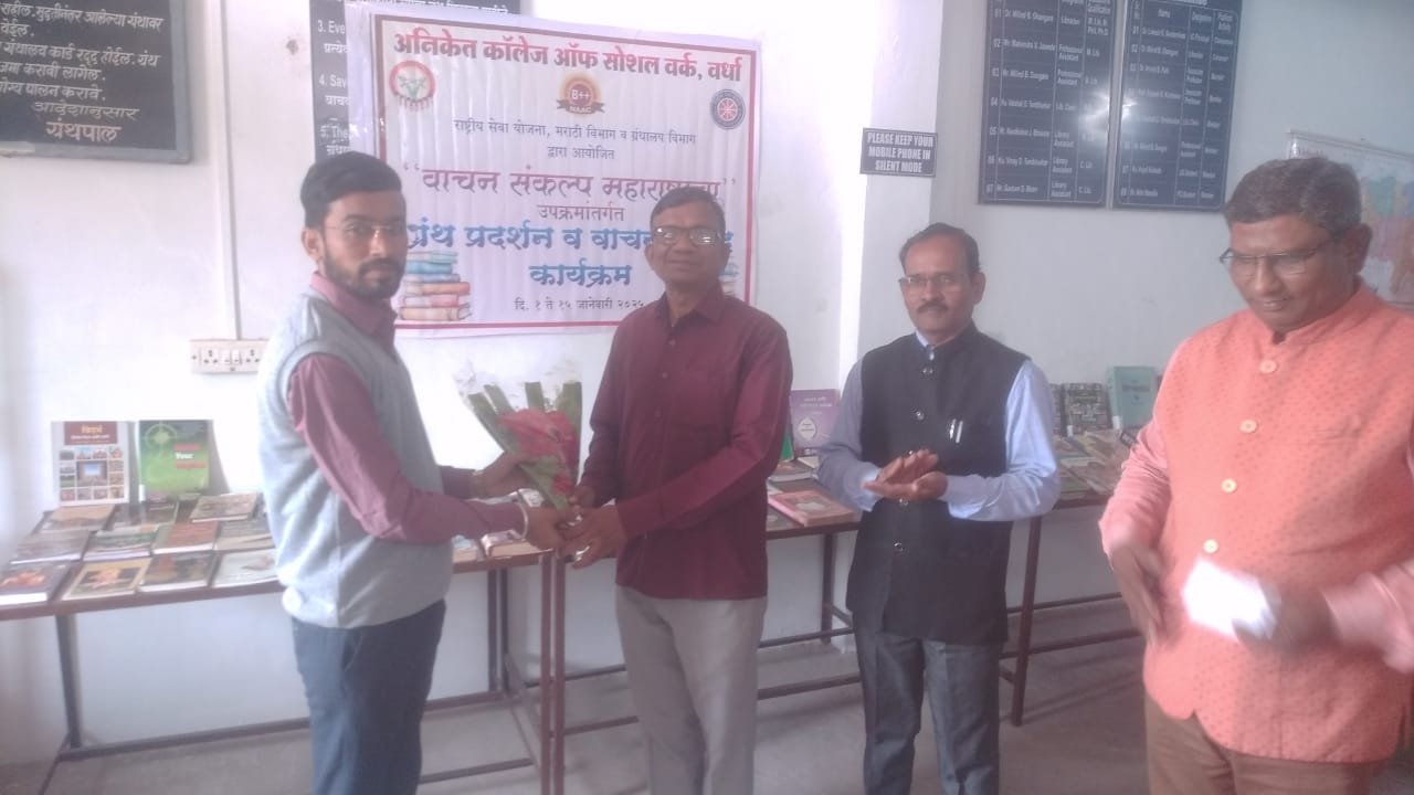 कॉलेज ऑफ सोशल वर्क येथे ग्रंथालय विभाग, मराठी भाषा विभाग व राष्ट्रीय सेवा योजना यांच्या संयुक्त विद्यमाने ‘वाचन संकल्प महाराष्ट्राचा’ उपक्रमाअंतर्गत १ ते १५ जानेवारी पर्यंत वाचन पंधरवडा कार्यक्रमाचे आयोजन करण्यात आले.