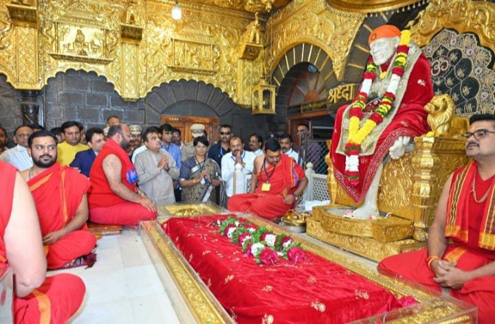 ना. नितीनजी गडकरी, केंद्रीय रस्ते वाहतूक आणि महामार्ग मंत्री, भारत सरकार यांनी श्री साईबाबांच्या समाधीचे दर्शन घेतले. यावेळी श्री साईबाबा संस्थान तदर्थ समिती अध्यक्ष तथा प्रमुख जिल्हा व सत्र न्यायाधिश अंजू एस. शेंडे ( सोनटक्के ) व श्री साईबाबा संस्थानचे मुख्य कार्यकारी अधिकारी गोरक्ष गाडीलकर आधी उपस्थित होते.
