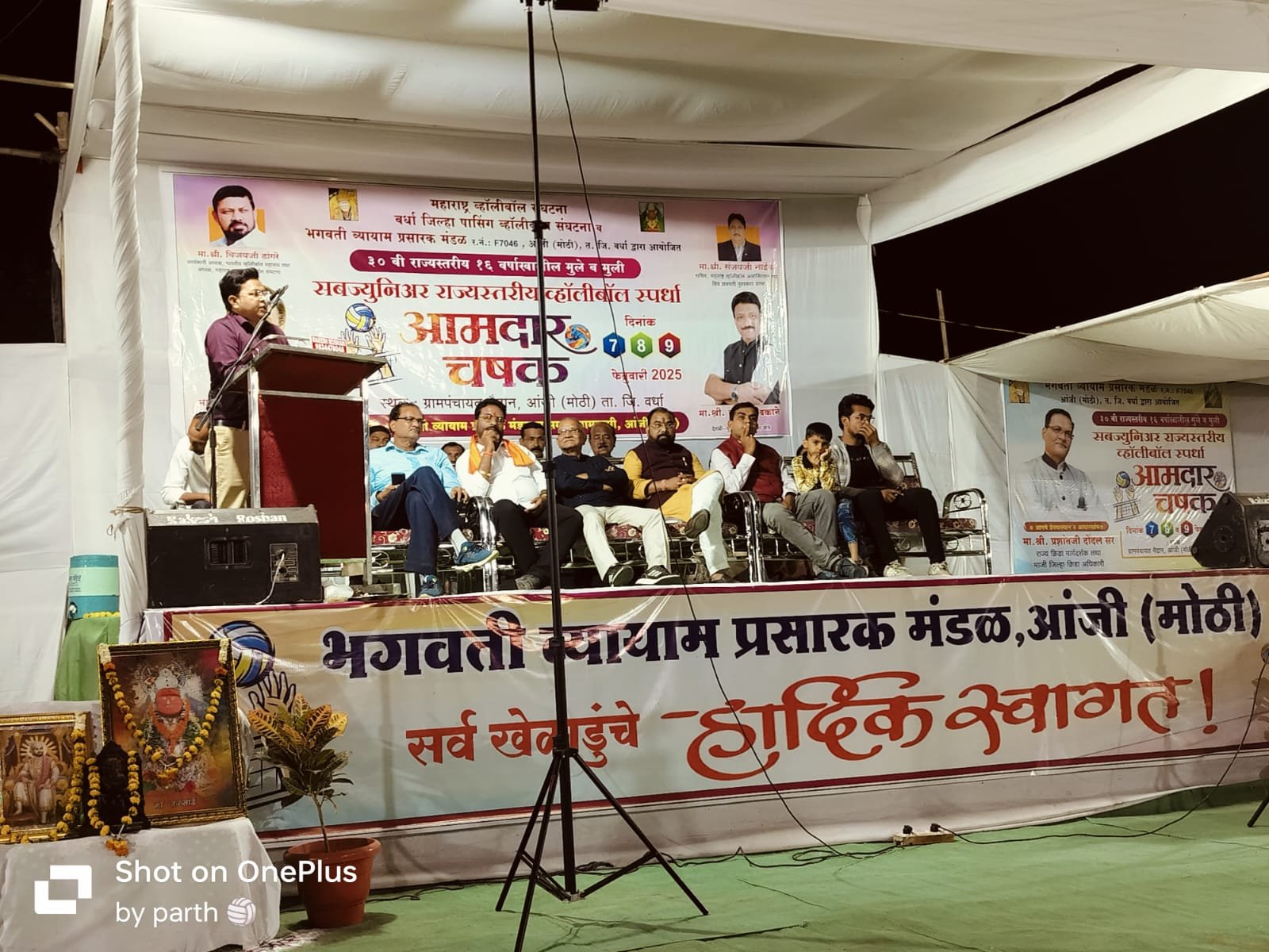 महाराष्ट्र व्हॉलीबॉल संघटना, भगवती व्यायाम प्रसारक मंडळ मोठी आंजी आणि वर्धा जिल्हा पासींग व्हॉलीबॉल असो यांच्या संयुक्त विद्यमाने आंजी मोठी जिल्हा वर्धा येथे दिनांक 7 फरवरी ते 9 फरवरी 2025 ला राज्य व्हॉलीबॉल संघटनेच्या 45 वी सब ज्युनियर राज्यस्तरीय व्हॉलीबॉल स्पर्धा (मुले व मुली) अत्यंत सुरळीत व सुव्यवस्थित पार पडल्या स्पर्धेचे उद्घाटन दिनांक 7 फरवरी रोजी मा.माजी खासदार रामदासजी तडस यांचे प्रमुख उपस्थितीमध्ये आणि मा. विजय जी डांगरे अध्यक्ष महाराष्ट्र व्हॉलीबॉल असोसिएशन यांचे अध्यक्षतेखाली तसेच वर्धा जिल्हा भारतीय जनता पार्टीचे अध्यक्ष सुनीलजी डफाट व इतर मान्यवरांच्या उपस्थितीमध्ये सोहळा सुनियोजितपणे सुरळीत पार पडला या स्पर्धेला भाजपा चे लोकप्रिय आमदार श्री बकाने साहेब यांचे आर्थिक पाठबळामुळे या स्पर्धा लोकाभिमुख झाल्यात या स्पर्धेत महाराष्ट्रातील आठही विभागाच्या मूले व मुलींच्या संघांनी भाग घेतलेला होता आंजी ग्रामपंचायत असलेल्या ग्रामपंचायतीच्या मैदानावर दोन राष्ट्रीय दर्जाचे मैदाने तयार करण्यात आली होती मैदानावरती अत्यंत प्रकाशित प्रकाशझोतामध्ये या स्पर्धा घेण्यात आल्या होत्या स्पर्धा साखळी आणि बाद पध्दतीने घेण्यात आल्यात स्पर्धेचे बक्षीस वितरण दि 9 फेब्रुवारी रोजी शिस्तबद्ध स्वरूपात संपन्न झाले
