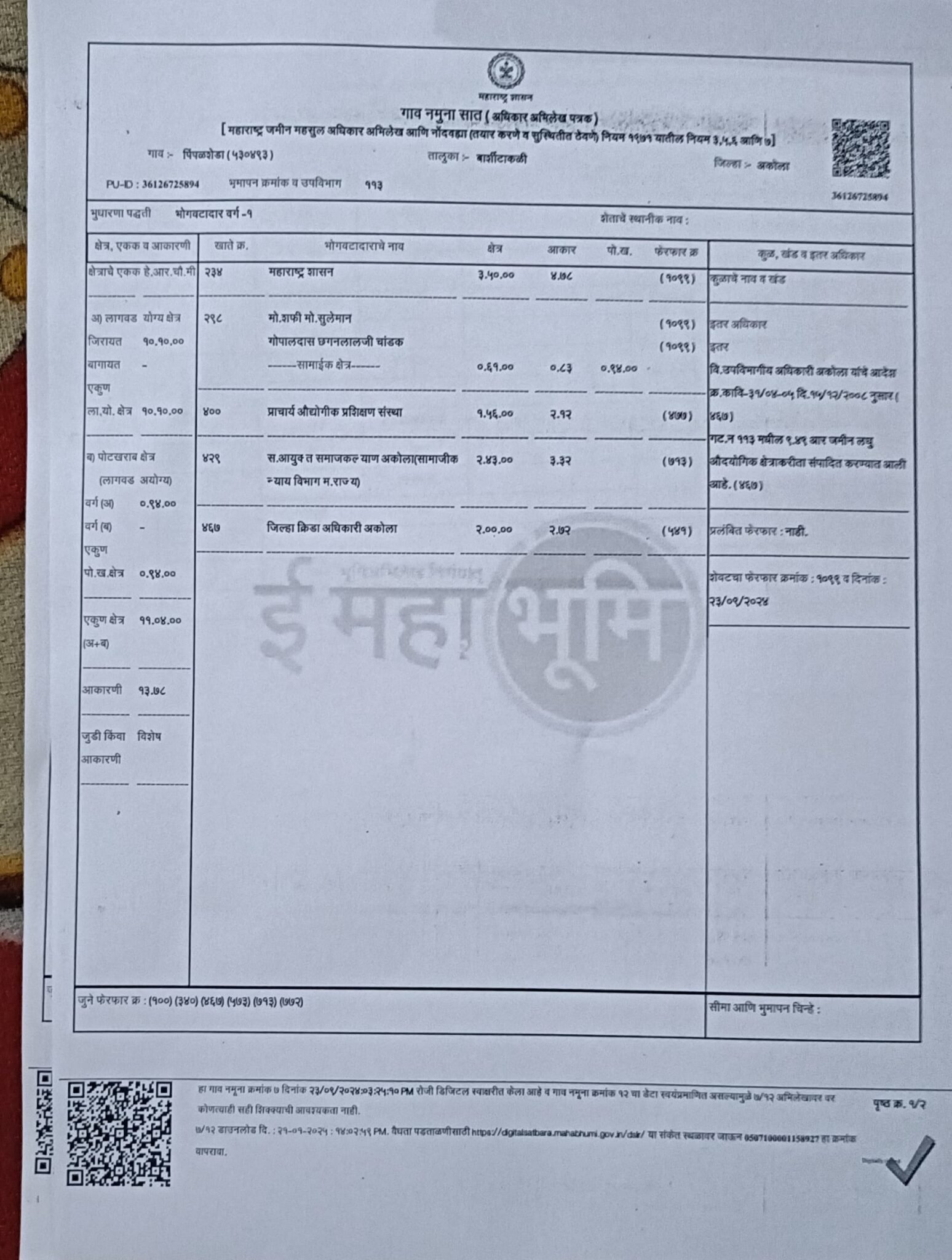 अकोला उपविभागीय अधिकारी यांच्या आदेशानुसार मौजे पिंपळशेंडा शिवारातील गट क्र. ११३ मधील ९.४९ हेक्टर आर जमीन लघु उद्योग क्षेत्रासाठी (एमआयडीसी) संपादित करण्यात आली होती. संपादनाचा अंतिम फेरफार १९ ऑगस्ट २०१७ रोजी झाली. तथापि, या जमिनीचा उपयोग करण्यासाठी आवश्यक कार्यवाही मात्र अद्याप झालेली नाही.