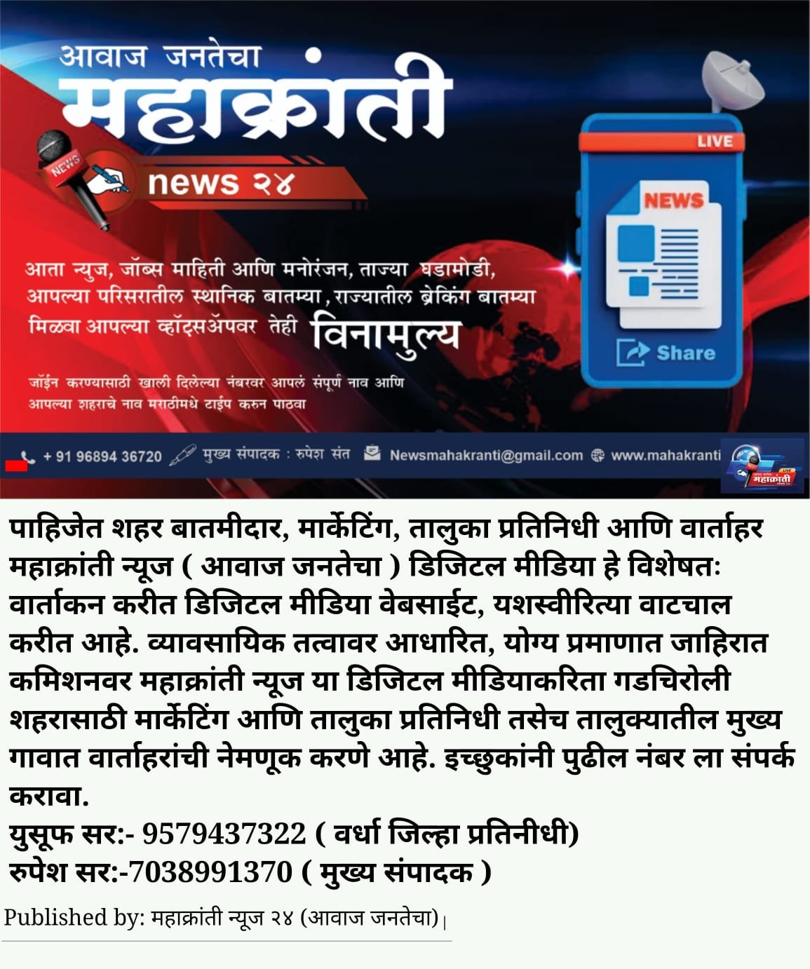 महाक्रांती न्यूज नेटवर्क: – युसूफ पठाण